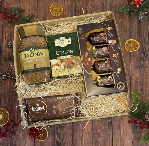 Zestaw Prezentowy BOX syropy kawa herbata czekolada PACZKA ŚWIĄTECZNA