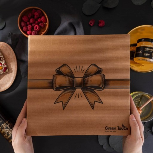 - specyfikacja opakowania: pudełko wykonane z grubej ryflowanej tektury, ozdobny nadruk na wieku