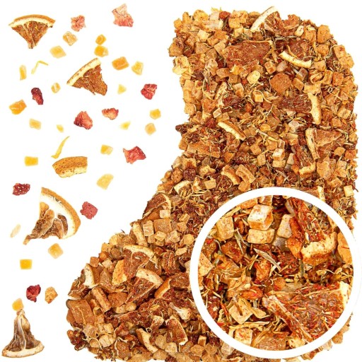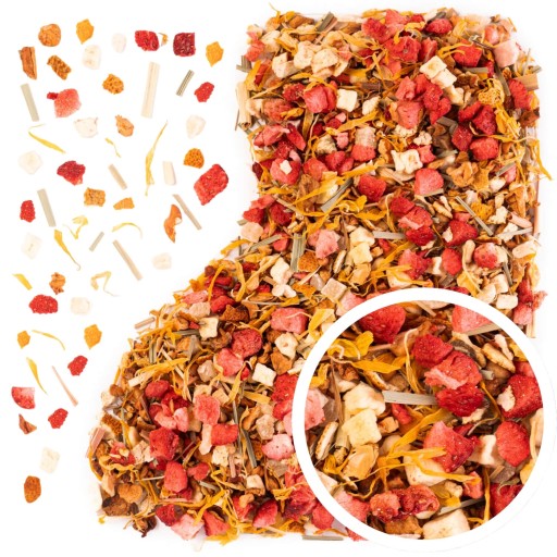 Herbata owocowa „Kolorowa rozkosz” to energetyzująca kompozycja pełna słonecznych owoców i subtelnej słodyczy egzotycznych dodatków.